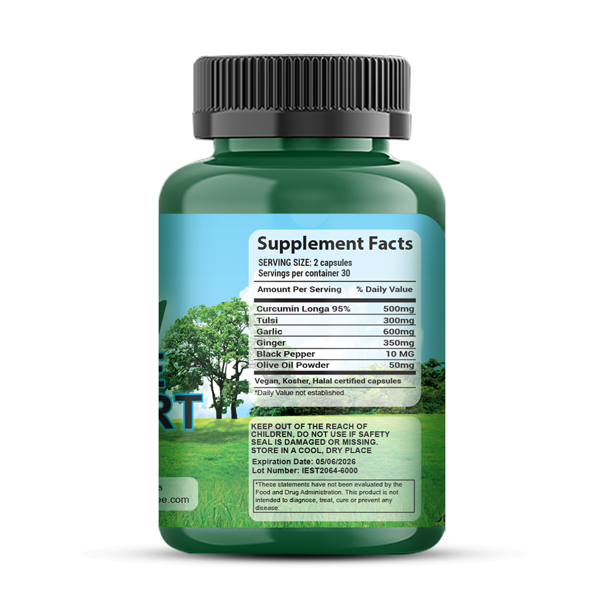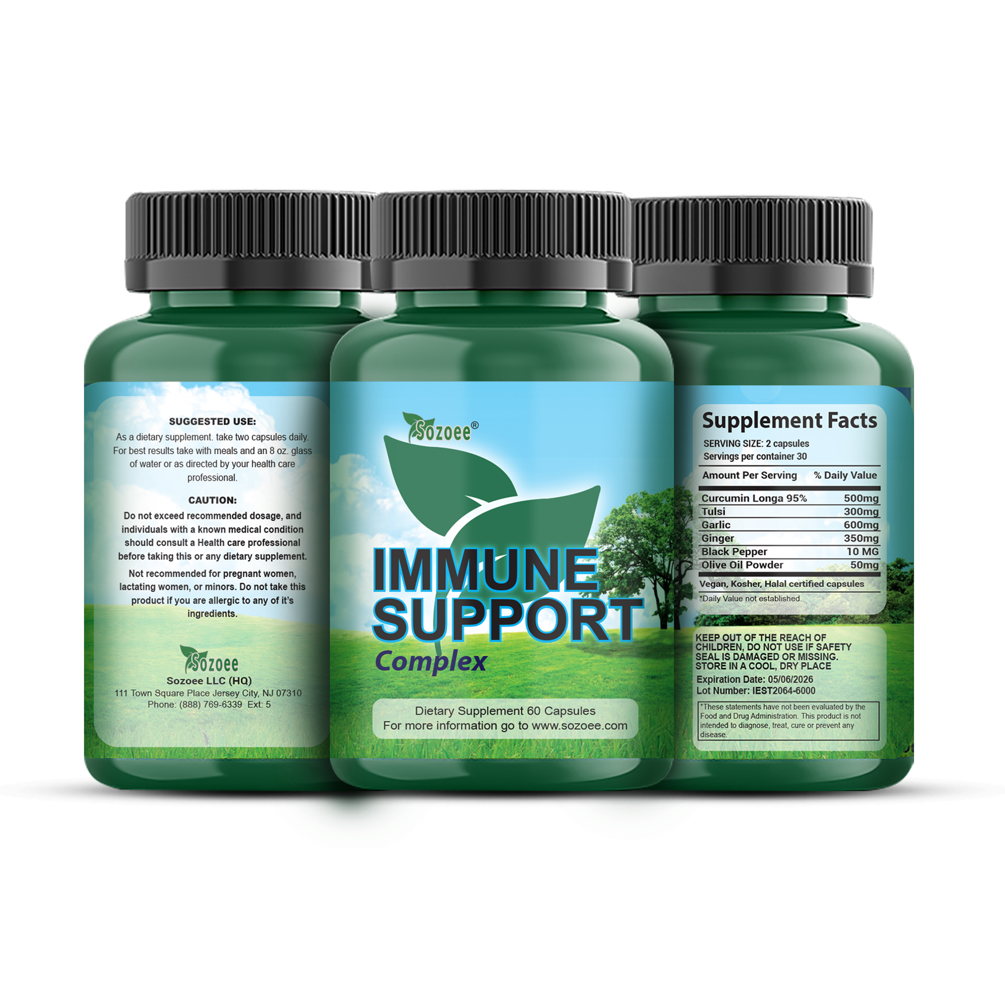 Sozoee Immune Support Supplement – Is a Natural Herbal supplement that promotes Immune Support – Turmeric, Tulsi, Garlic, Ginger, Black pepper fruit, and Olive Oil. 60 vegetarian capsules